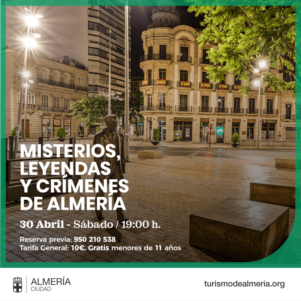 Visita guiada (misterios, leyendas y crímenes de Almería) Publicado poralindalus25 abril, 2022Publicado en Almería Echaremos un buen rato este sábado recorriendo las calles de la ciudad. Prometo que nadie va a aburrirse. Compártelo: Compartir en X (Se abre en una ventana nueva) X Compartir en Facebook (Se abre en una ventana nueva) Facebook Me gusta Cargando... Relacionado